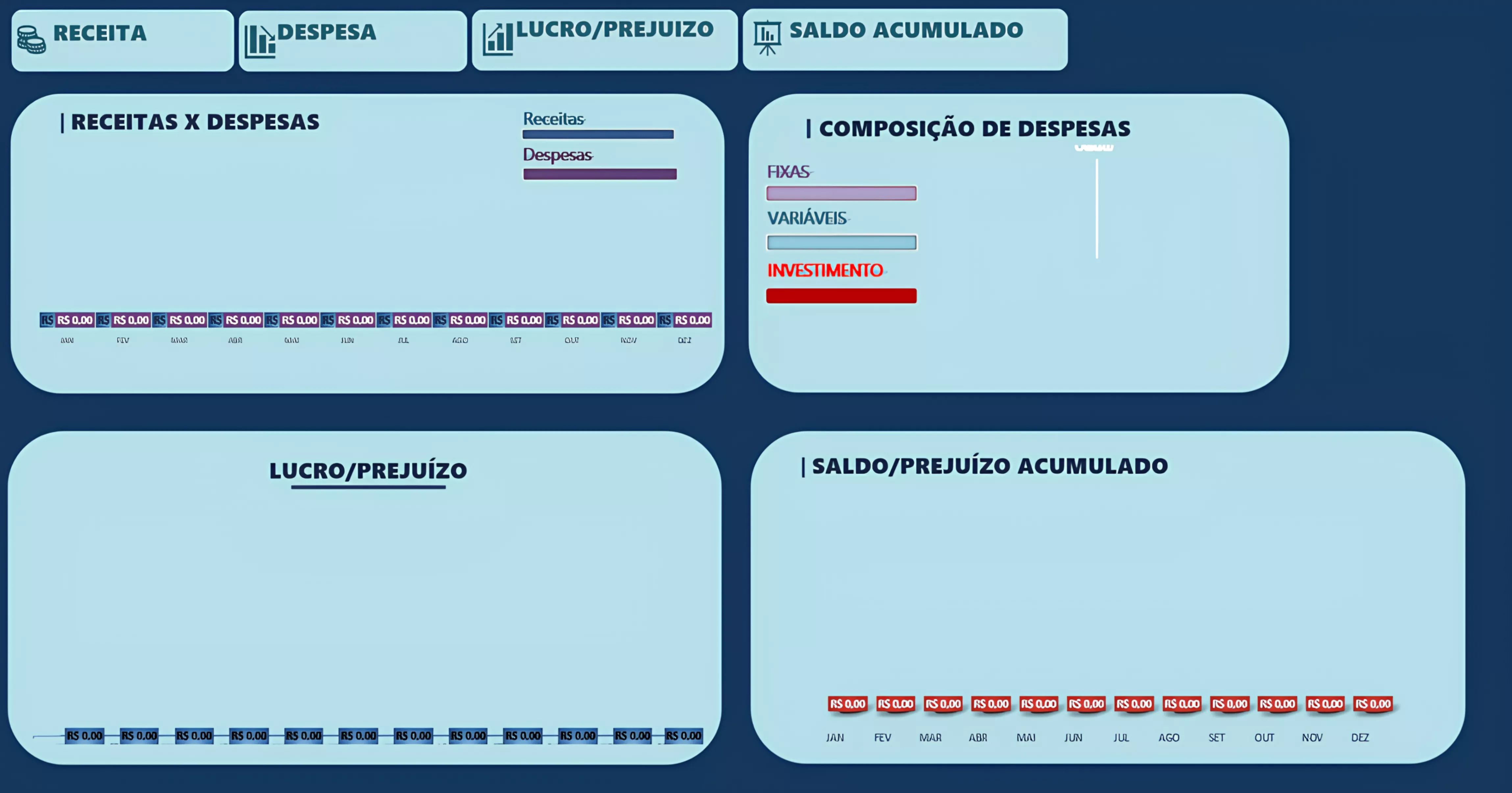 Organize suas finanças de forma simples e prática. Economize tempo e evite erros no controle de gastos, custos fixos e variáveis.